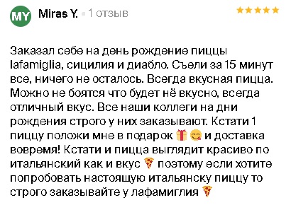 Асель работает с «LaFamiglia» уже год. За это время итальянская ремесленная пекарня стала излюбленным местом посетителей ТРК «Орал» - одного из крупнейших в Уральске. Франчайзи старается удовлетворять запросы своих клиентов и постоянно вводит в ассортимент новые позиции. Однако пицца была и остается самым популярным продуктом пекарни. Об этом можно судить по отзывам.