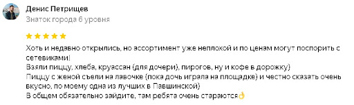 «LaFamiglia» в этом подмосковном городе работает несколько месяцев. Представитель Артем тщательно подготовился к старту. И клиенты пекарни сразу же оценили выпечку. По словам Артема, помимо пиццы, большим спросом пользуется ремесленный хлеб. Ассортимент пекарни постоянно расширяется.